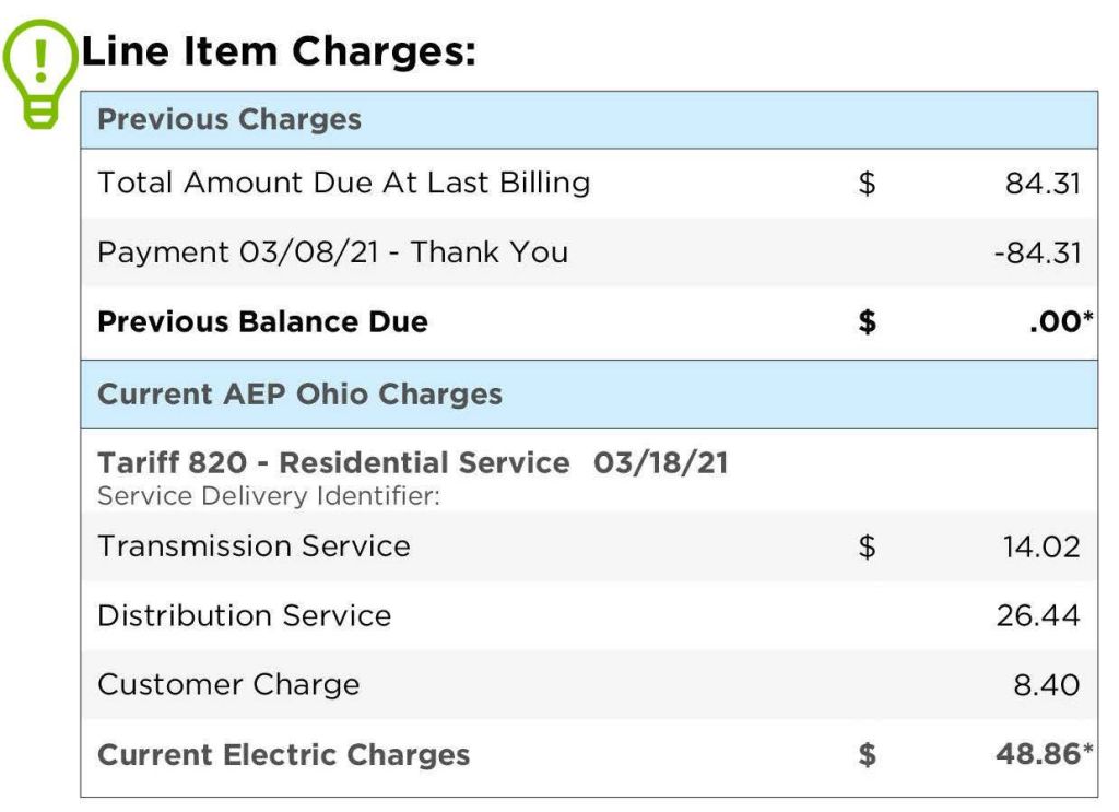 Note too that there is NOT a “Generation Service” charge on your bill when the account is being service by a Supplier. Generation Service will be listed if you are being served by AEP Ohio.