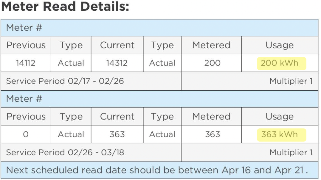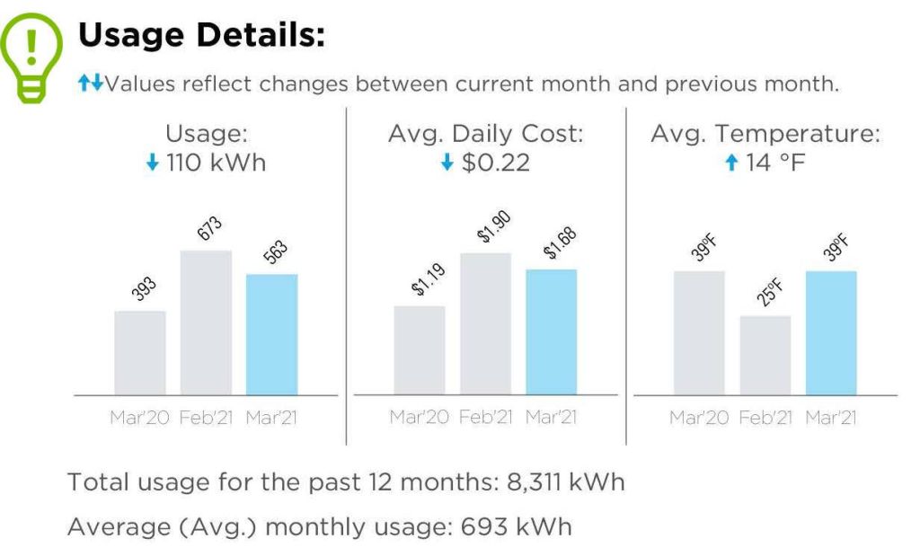 Also you’ll find Average Monthly usage. This can be used too when considering solar energy for your home.