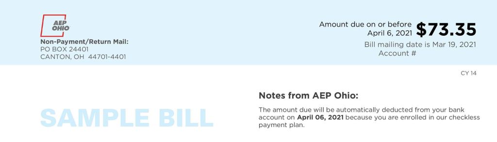 When you are enrolled in Clean Energy Columbus, you will continue to receive one bill each month AEP Ohio, your local utility. The amount that you owe to AEP Energy will be stated separately on your bill and you will continue to send payments to your local utility only.