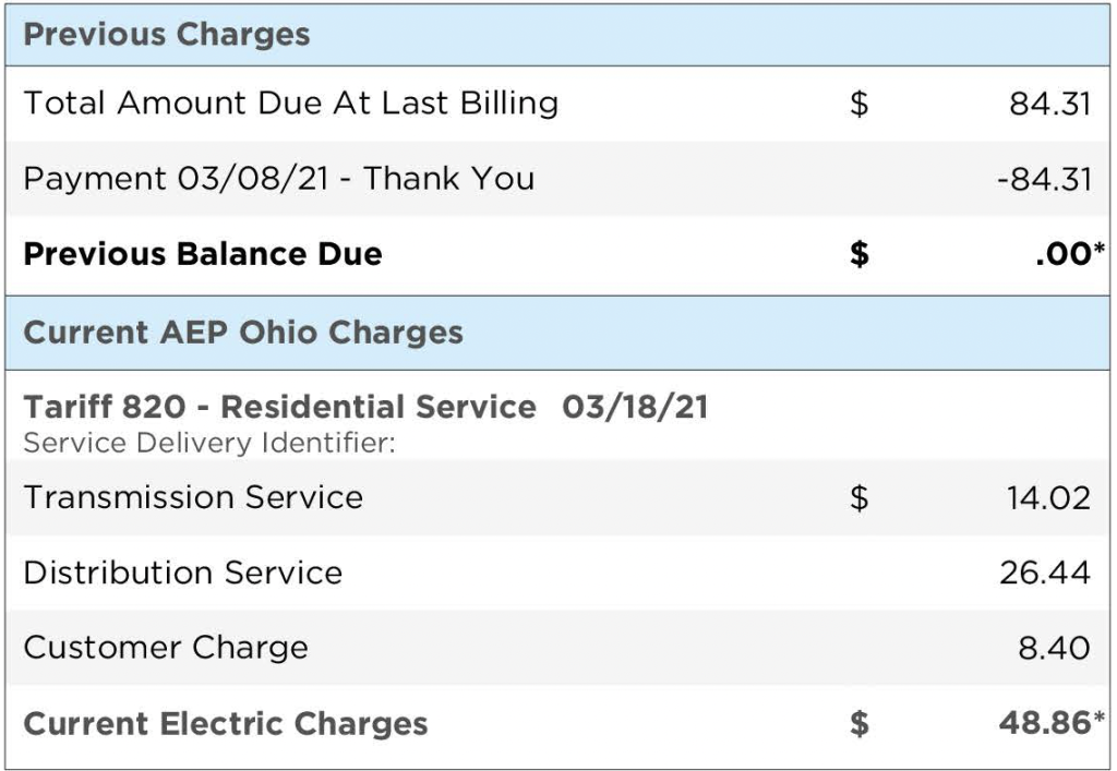 Again, a summary of the total charges paid to AEP Ohio. Note, you pay the full amount to the utility and the utility will make payment to the supplier. One payment.
